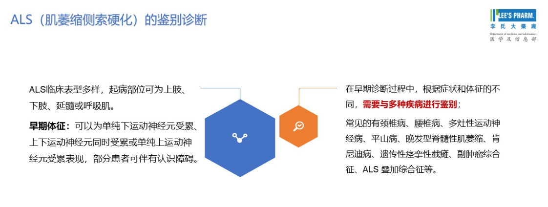 李氏医学探索结合2022版专家共识,将ALS的核心检查方案归纳为五大类,为临床诊断提供清晰指引:首先是基础的临床检查,涵盖详细病史询问与系统体格检查;其次包括神经电生理检查、神经影像学检查及基因检测三大关键专项;最后还需通过生化检测、神经丝轻链检测、肺功能检查等项目,排查可治性疾病及其他潜在致病因素。